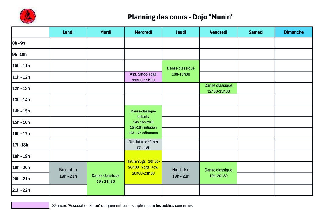 Consultez notre planning pour connaître les jours et les horaires de chaque cours.