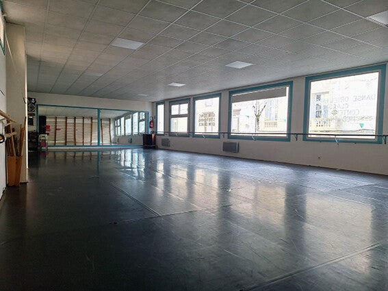 Un grand dojo de 120m2 avec baie vitrée donnant sur la rue, miroirs, espaliers en bois et barres de ballet. Le parquet permet d’accueillir des cours ou des stages de danse. Cette salle sera prochainement équipée de tatamis de Judo et de tapis de gym puzzles.